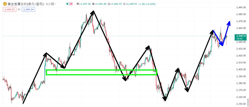 技术分析面切入,1小时级别观察黄金走势符合上周分析架构转为多方格局,主因受到联准会Fed最新利率会议中放出鸽派降息消息,使得黄金再次强势上涨,目前K棒型态呈现多方排列,若有维持在布林通道中轨上方,未来有望再次冲高上涨挑战上方高点,因此建议市场投资人黄金操作心态尝试偏多看法为主。