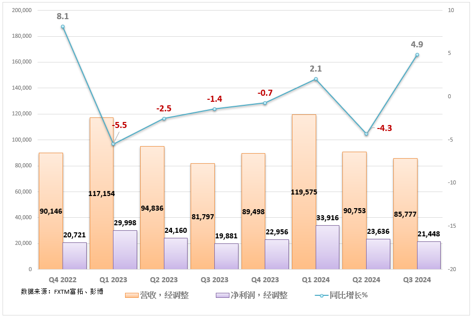 同样值得注意的还有,服务部门实现了两位数的增长,这有助于抵消中国市场的疲软(营收同比下滑6.5%)。