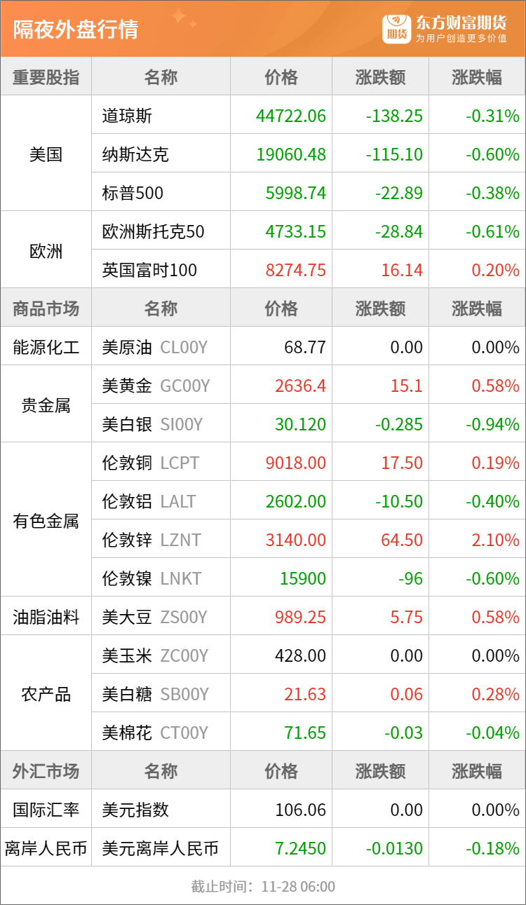 棉花:中国棉花协会11月预测:2024/25年度,全国棉花产量635.5万吨,较上期上调15.4万吨,同比增长8.1%;棉花进口量190万吨,同比下降41.3%;消费量800万吨,同比增长1.3%;期末库存1017.4万吨,同比增长2.3%。(中国棉花协会)