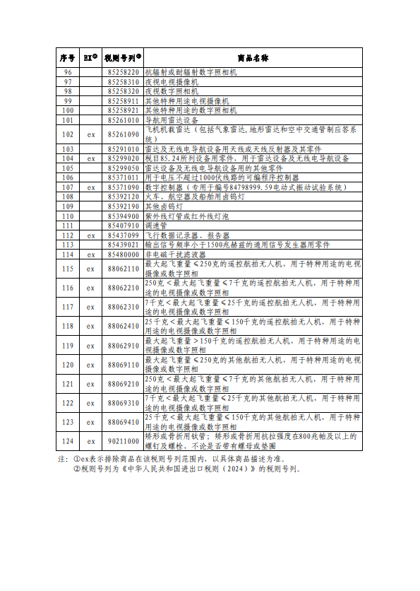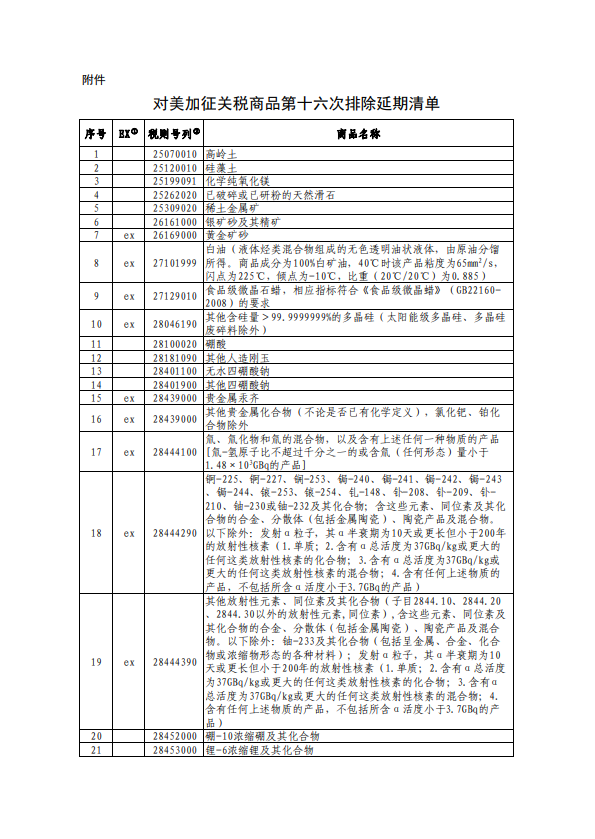 自2024年12月1日至2025年2月28日,对附件所列商品,继续不加征我为反制美301措施所加征的关税。