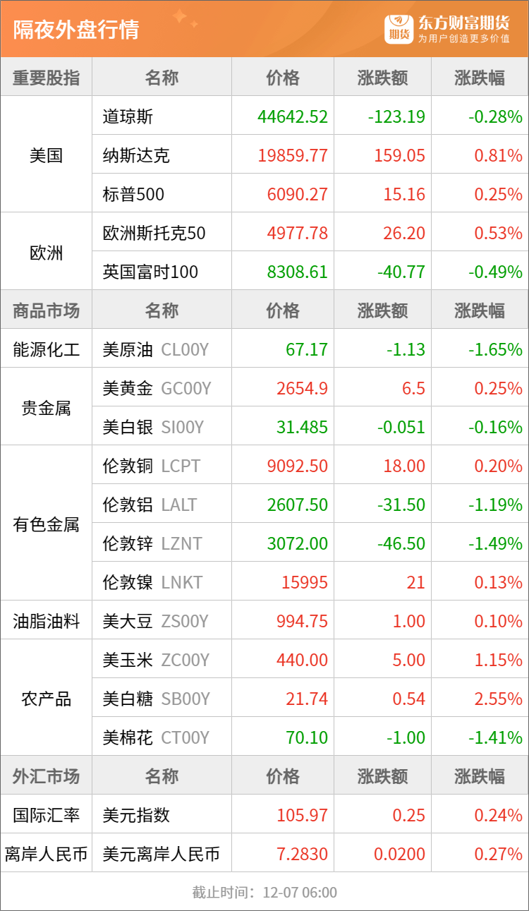 焦炭:12月6日唐山市场主流钢厂计划对湿熄焦炭价格下调50元/吨、干熄焦下调55元/吨,2024年12月9日零点执行;邢台地区部分钢厂对湿熄焦炭下调50元/吨、干熄焦炭下调55元/吨,2024年12月9日零点执行。