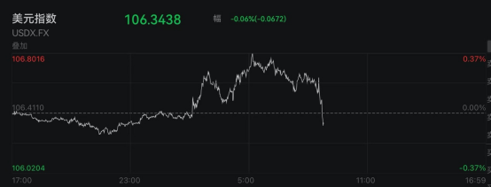 黄金、白银并无明显波动。美元指数则短线跳水,截至发稿,报106.35,抹去日内所有涨幅。美国国债收益率震荡走低,10年期国债收益率报4.221%;对利率路径更为敏感的2年期国债收益率的回落尤为明显,报4.126%。