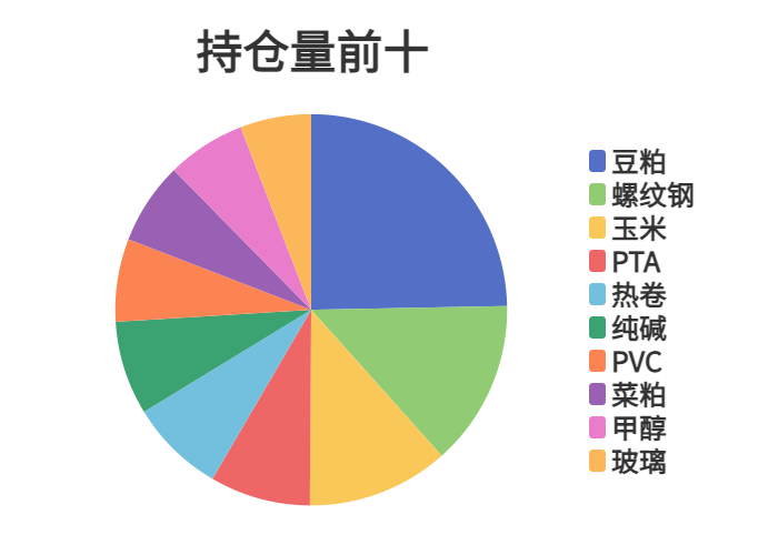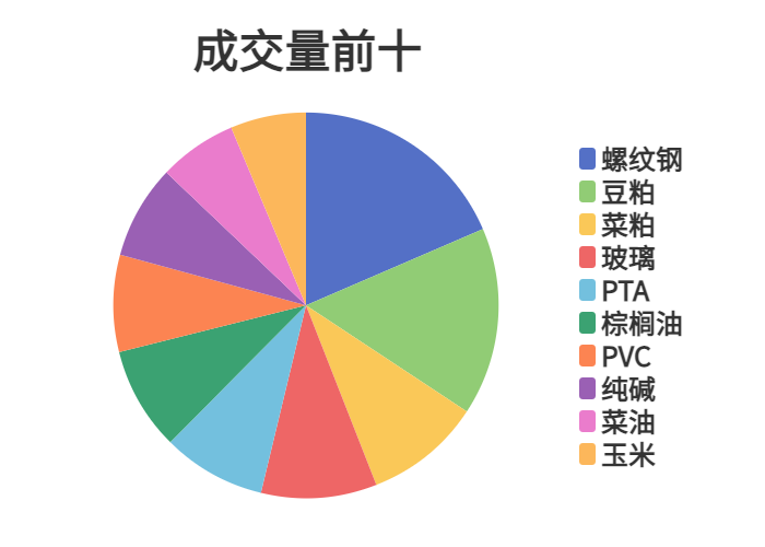 市场成交量前十和持仓量前十如下图所示: