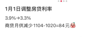 重定价日为1月1日的存量房贷迎来利率下调,调整幅度高达60个基点。房贷利率中贷款市场报价利率(LPR)的部分将按照最新的5年期以上LPR报价重新定价。