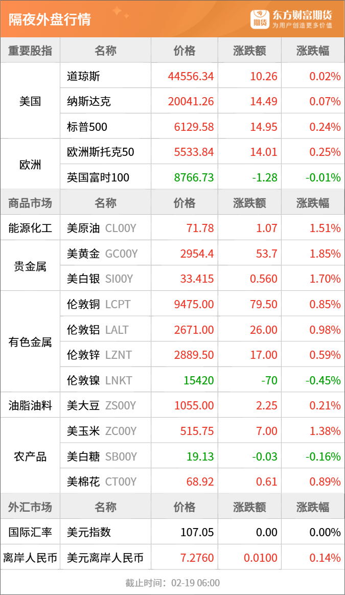 铁矿石:卫星数据显示,2024年2月10日-2月16日期间,澳大利亚、巴西七个主要港口铁矿石库存总量1370.0万吨,环比上升64.7万吨,库存小幅累库,目前库存绝对量处于年初以来的高点。(我的钢铁网)