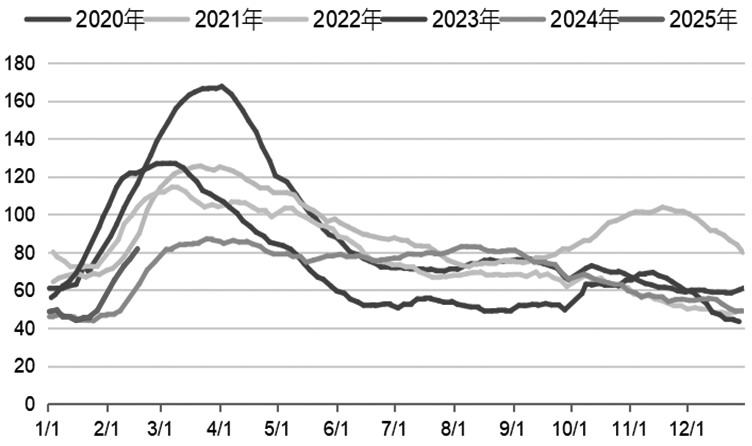 基本面上,国内电解铝运行产能维持高位,产能利用率保持在95%以上,且随着氧化铝价格的回落,铝厂利润得以修复,四川、广西部分铝厂复产,2月电解铝运行产能继续缓慢抬升。需求方面,铝下游加工龙头企业开工率继续回升,尤其是元宵节后,下游复产复工加速,其中线缆和型材板块的拉动作用明显。根据机构统计,截至上周,国内线缆板块开工率周度上行6个百分点,至51%,随着输变电和特高压订单的落地,后续开工率将继续提升;型材板块开工率周度提升8.2个百分点,至69.5%,光伏型材排产季节性增加,但建筑型材新增订单仍略显疲软。3月传统消费旺季临近,各板块开工率仍有上行空间。