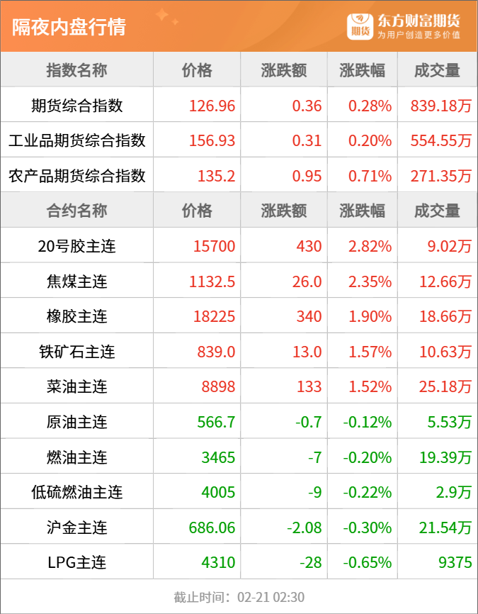 2月20日全国主港铁矿累计成交91.4万吨,环比上涨22.95%;本月平均每日成交84.5万吨,环比下跌2.54%。当天远期现货累计成交94.5万吨(6笔),环比上涨103.23%,其中矿山成交量22.5万吨。(新华财经)