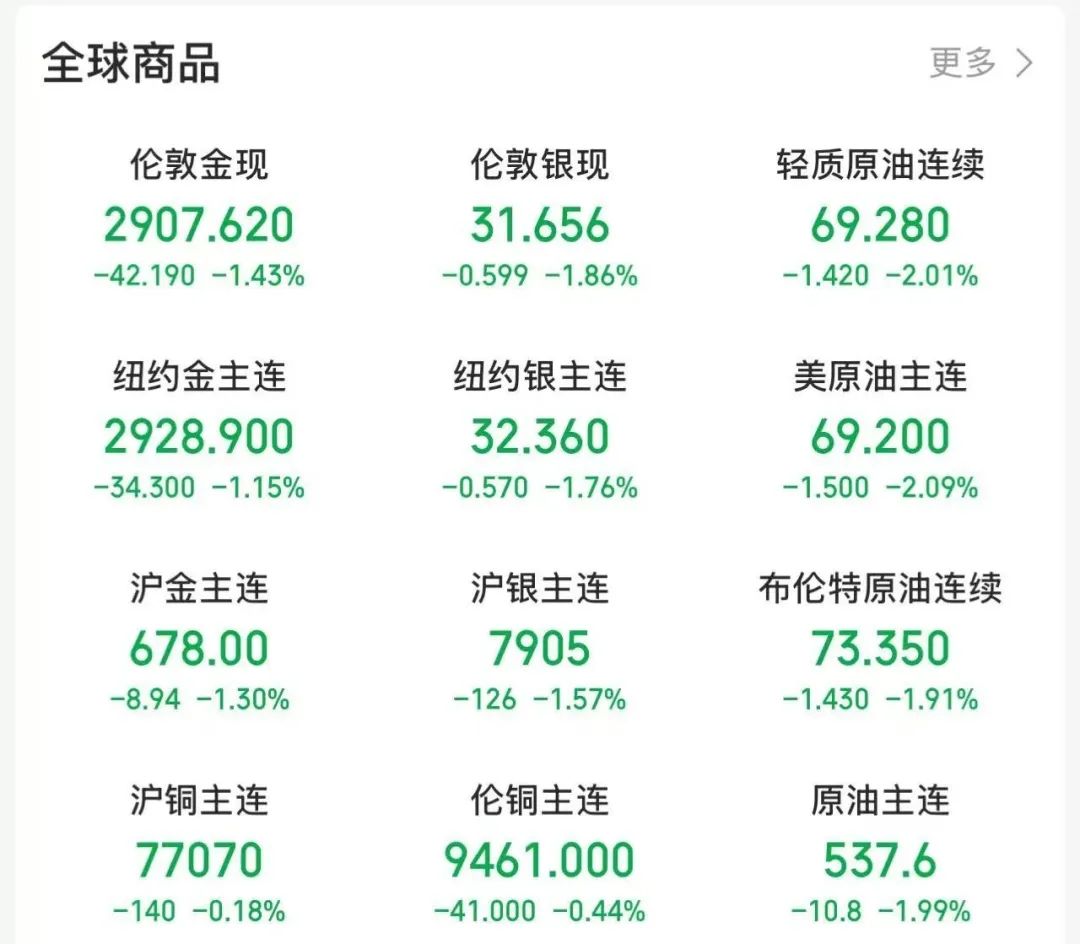 25日晚,现货黄金一度大跌50.47美元/盎司,跌幅达1.71%。纽约期金跌超1%,现货白银、纽约期银跌近2%。WTI原油跌超2%,布伦特原油跌1.91%。