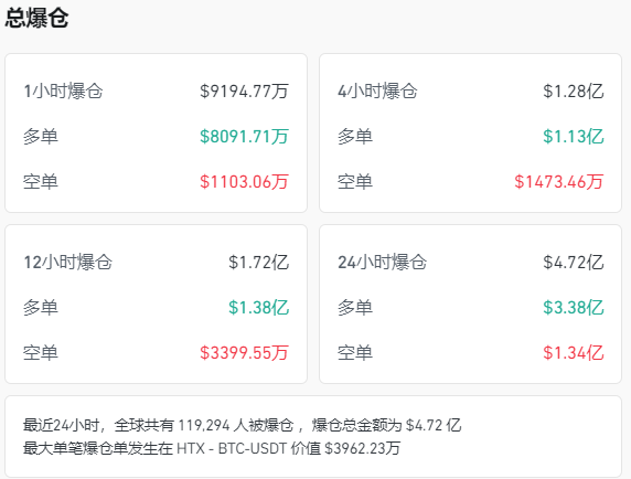 Coinglass数据显示,过去24小时内,有近12万人爆仓。