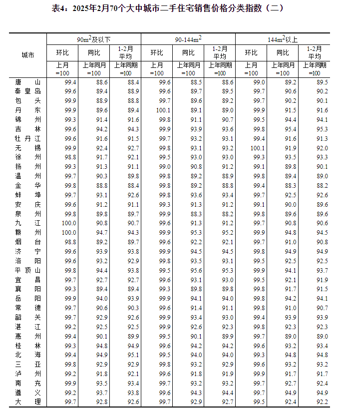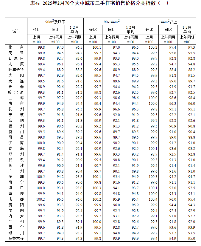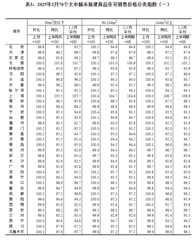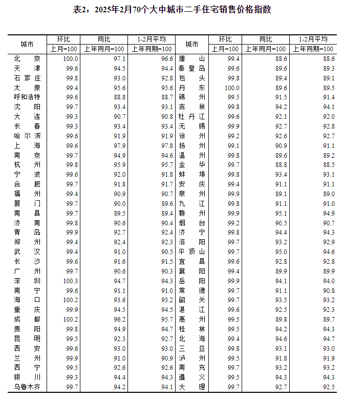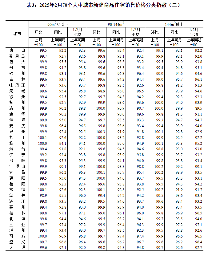 2025年2月份70个大中城市商品住宅销售价格变动情况