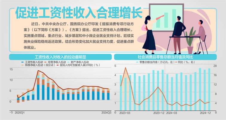 3月16日,据新华社消息,近日,中共中央办公厅、国务院办公厅印发《提振消费专项行动方案》(以下简称《方案》),并发出通知,要求各地区各部门结合实际认真贯彻落实。《方案》部署了8方面30条重点任务,其中提到促进工资性收入合理增长、促进重点群体就业、拓宽财产性收入渠道、加大生育养育保障力度、严格落实带薪年休假制度等。