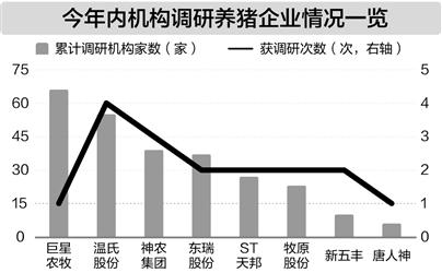 今年以来,有8家养猪企业获得机构调研,其中,温氏股份、神农集团、东瑞股份、牧原股份等获得2次及以上调研,巨星农牧、温氏股份、神农集团、东瑞股份累计获得30家以上机构调研。