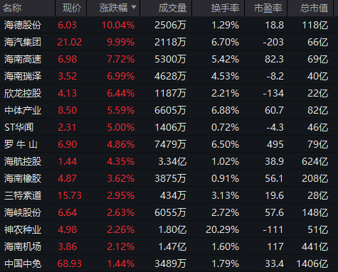 海南本地股异动拉升,海德股份、海汽集团涨停,海南高速、海南瑞泽、欣龙控股等跟涨。