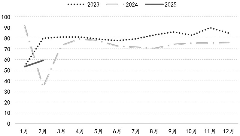 图为我国锡焊料企业月度开工率(单位:%)