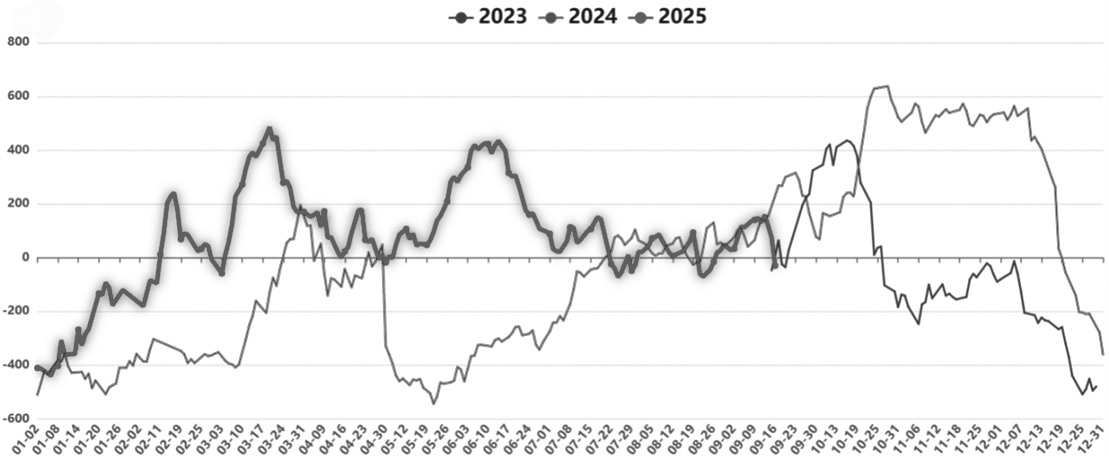 图为烧碱期货主力合约基差(单位:元/吨)