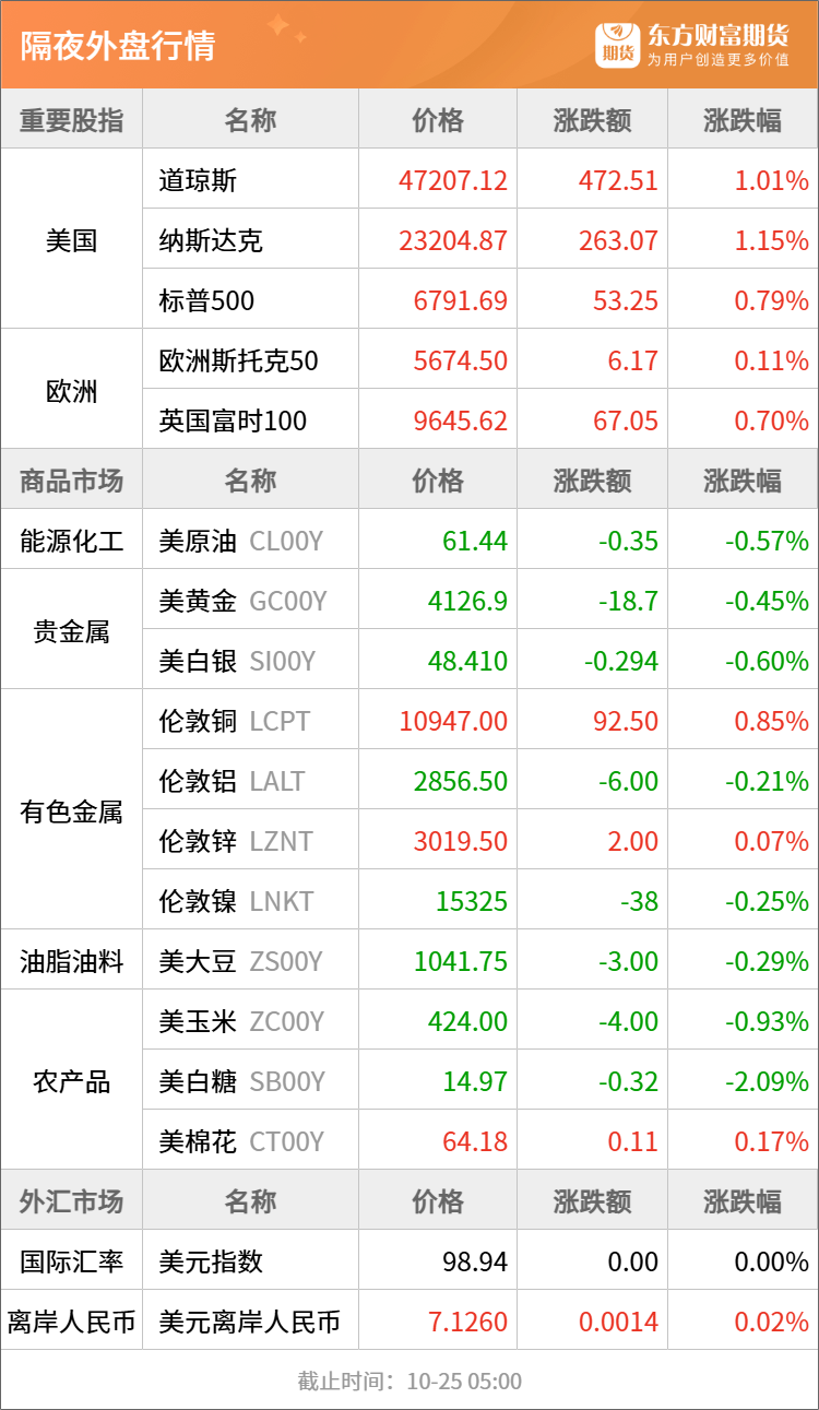 生猪:据农业农村部监测,本周(截至10月24日)国内生猪价格持续上涨,周均价环比上涨。据中国养猪网的数据,10月24日,生猪(外三元)价格为11.8元/公斤,与上周五(10月17日)的11.17元/公斤相比,上涨5.6%。从一周均价来看,本周生猪均价为11.5元/公斤,与上周11元/公斤的均价相比,上涨4.5%。大地期货认为,二育群体出大于入,企业端月内出栏压力有所缓解,月末月初或有缩量预期;需求端在各地气温普降的刺激下有小幅回暖,短时猪价预计存有一定支撑。但近端补库同样也带来了产能后置风险,叠加四季度基础供应压力仍大,中期供需宽松大趋势不改。(财联社)