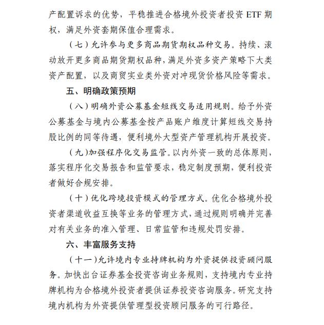 下一步,中国证监会将推动《工作方案》提出的各项开放优化举措尽快落实落地,并在此基础上进一步深化对合格境外投资者制度的研究,不断丰富提升对外开放制度吸引力的改革举措。