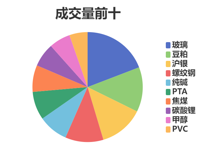 市场成交量前十和持仓量前十如下图所示: