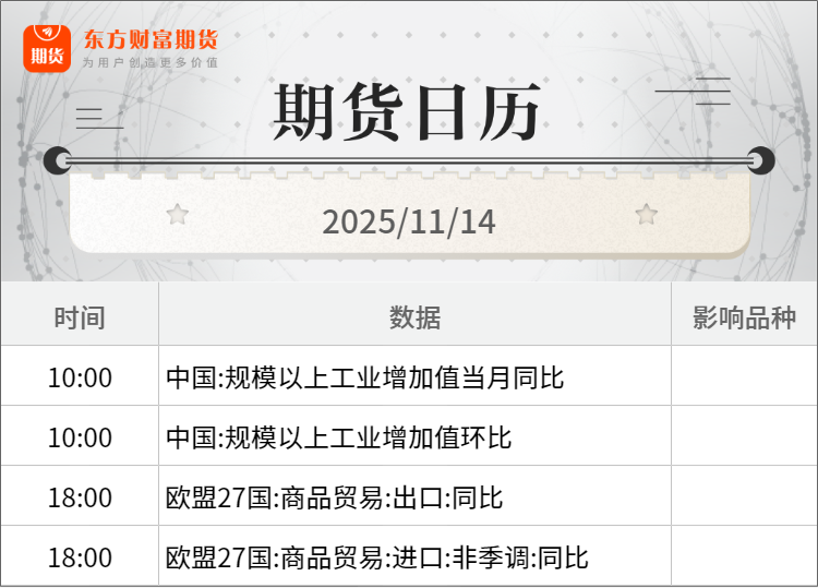 2025年11月上旬,重点统计钢铁企业共生产粗钢1926万吨,平均日产192.6万吨,日产环比增长6.0%;生铁1804万吨,平均日产180.4万吨,日产环比增长3.5%;钢材1884万吨,平均日产188.4万吨,日产环比下降5.5%。(中钢协)