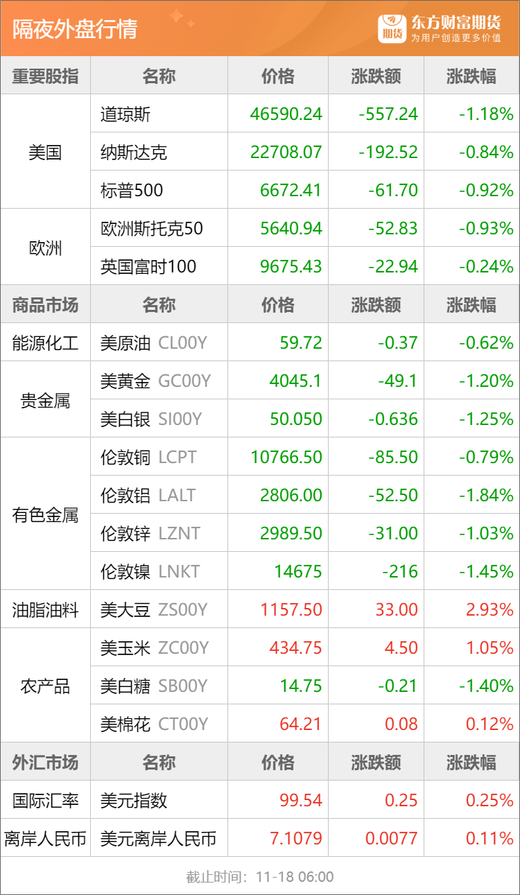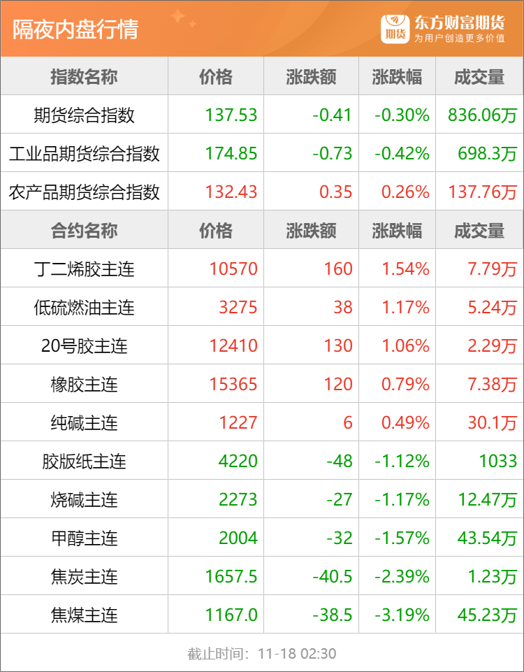 橡胶:据隆众资讯,截至2025年11月16日,青岛地区天胶保税和一般贸易合计库存量45.26万吨,环比上期增加0.31万吨,增幅0.70%。其中保税区库存6.66万吨,降幅1.76%。(隆众资讯)