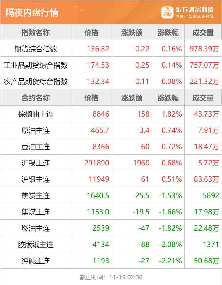 豆粕:上周国内油厂大豆压榨量再度回升至200万吨以上高位,但下游饲料企业采购策略基本不变,维持现有豆粕头寸采购现货补库滚动,豆粕库存随之攀升。中国粮油商务网监测数据显示,截止到2025年第46周末,国内豆粕库存量为99.9万吨,较上周的96.9万吨增加3.0万吨,环比增加3.05%;合同量为587.1万吨,较上周的653.8万吨减少66.7万吨,环比下降10.21%。(中国粮油商务网)