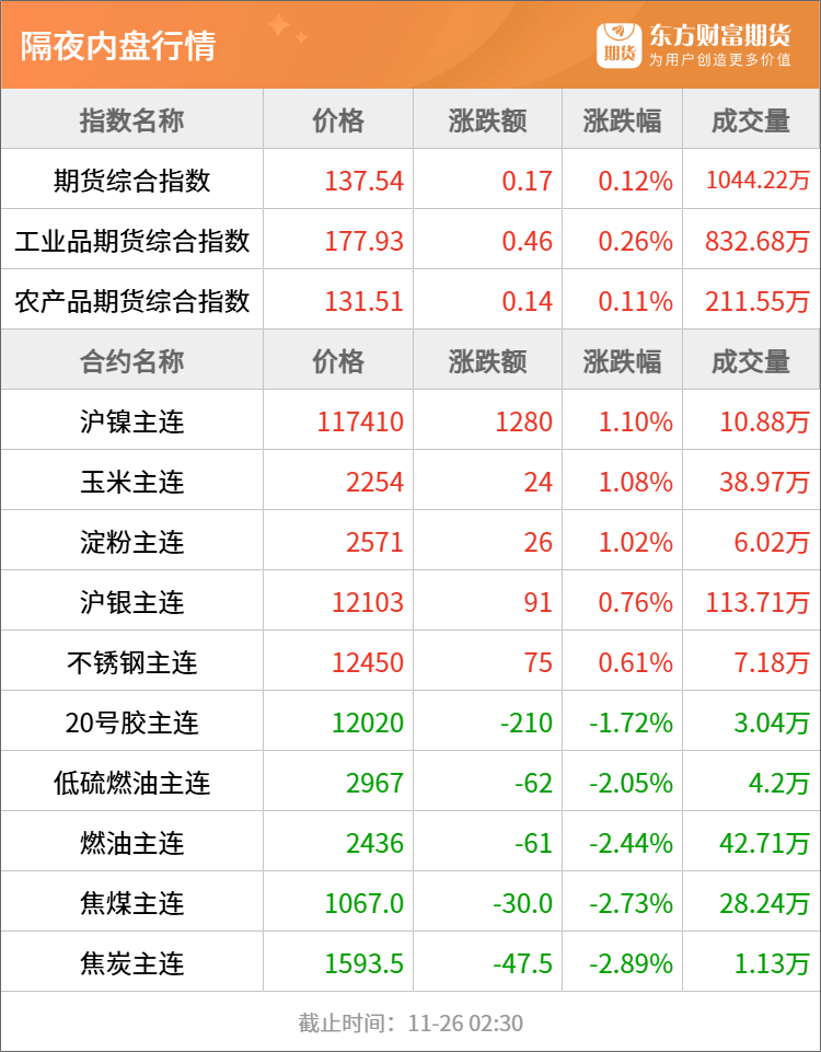 隔夜行情