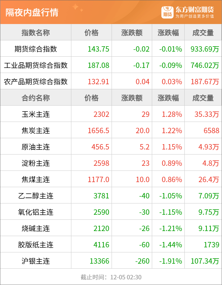 隔夜行情