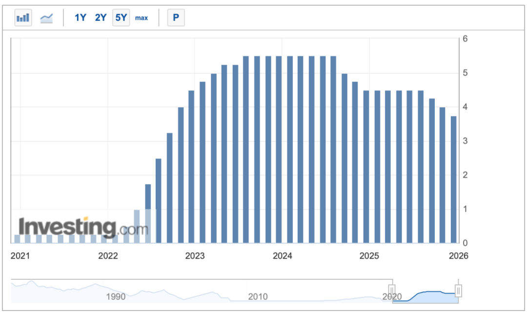 最新发布的点阵图预测显示,在2026年和2027年各有一次25个基点的降息。美联储的中值预测显示,2026年利率为3.4%,2027年为3.1%,与9月份预测一致。