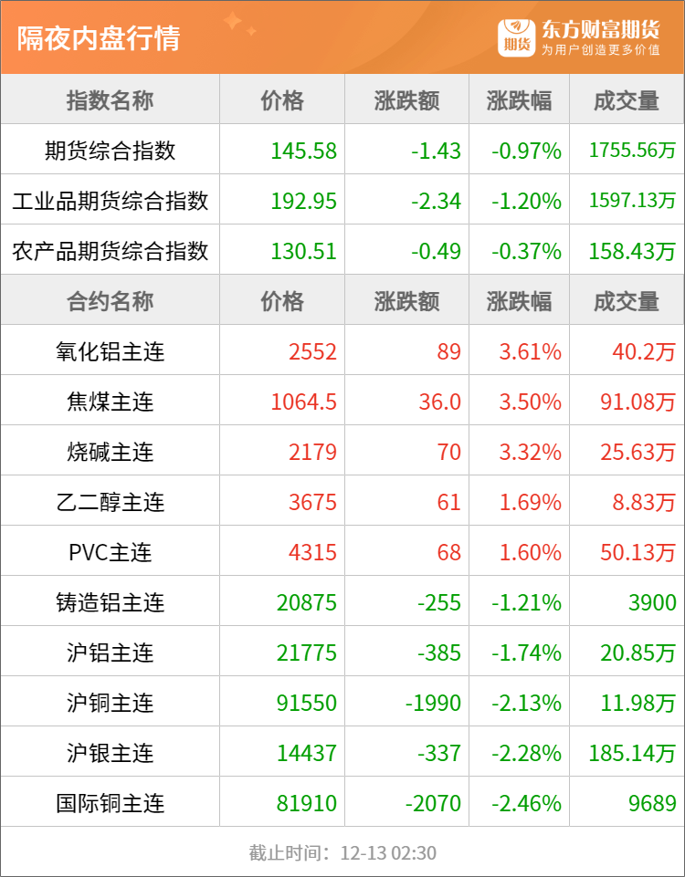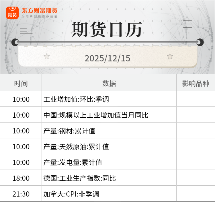 中国证券报:12月13日,中央财办分管日常工作的副主任、中央农办主任韩文秀在2025-2026中国经济年会上表示,做好明年经济工作,要坚持稳中求进,提质增效,加大逆周期和跨周期调节,切实提升宏观经济治理效能。去年9月26日中央政治局会议以来,先后出台实施了一系列政策措施,明年还将根据形势变化出台实施增量政策。