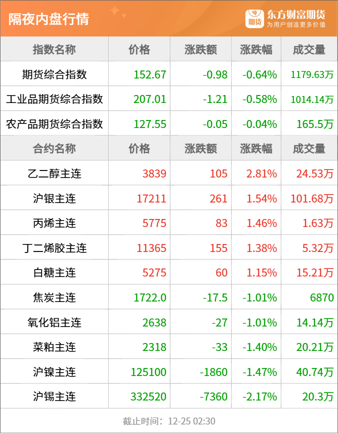 钢材:中钢协数据显示,2025年12月中旬,重点统计钢铁企业钢材库存量1601万吨,环比上一旬增加126万吨,增长8.6%;比年初增加364万吨,增长29.5%;比上月同旬增加40万吨,增长2.6%;比去年同旬增加137万吨,增长9.4%,比前年同旬增加99万吨,增长6.6%。