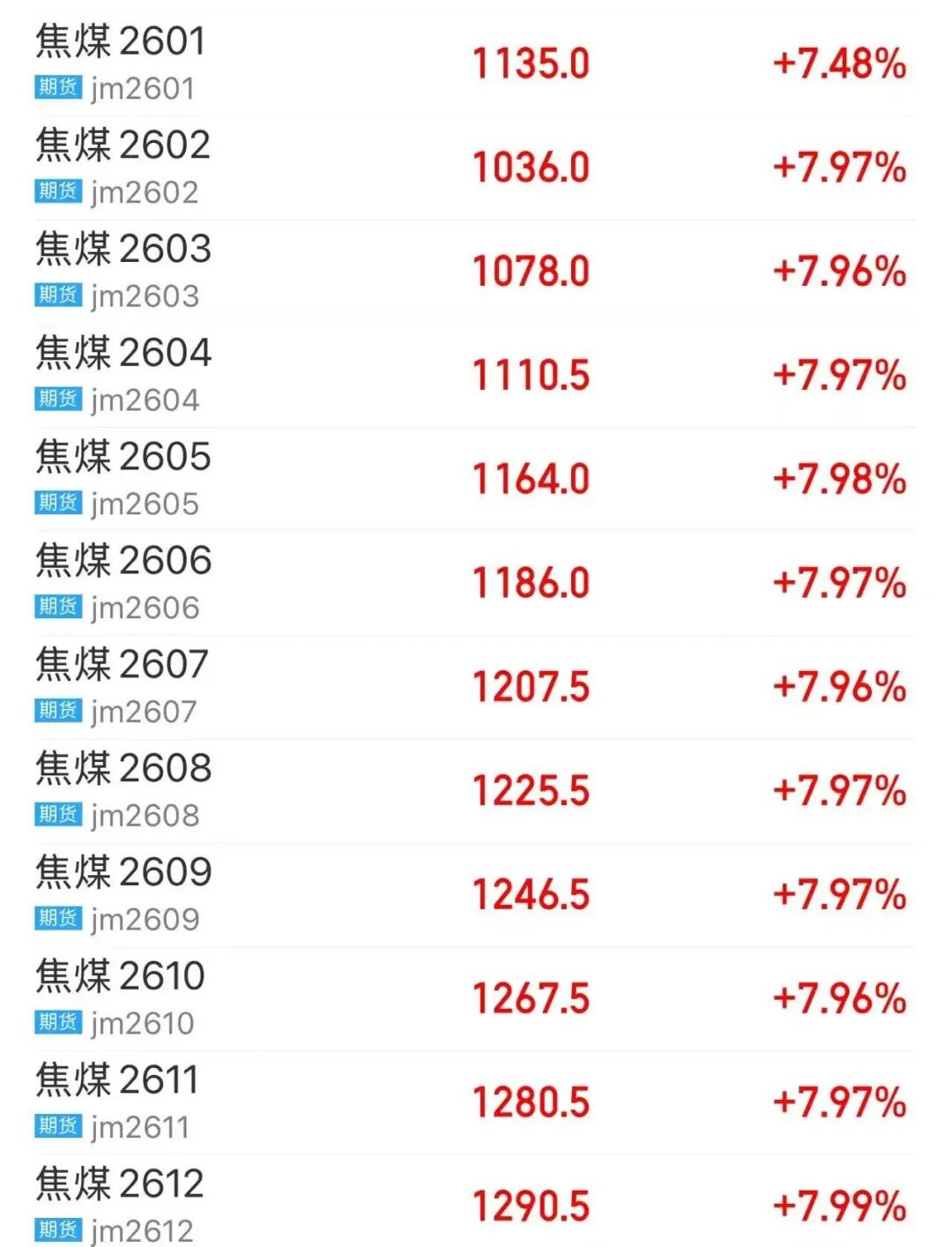 昨日,焦煤、焦炭期货多个合约涨停。此外,A股煤炭板块大涨,大有能源涨停,陕西黑猫回封涨停,郑州煤电逼近涨停,潞安环能、山西焦煤、晋控煤业均涨超6%。