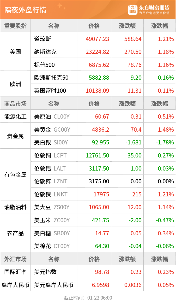 沪金:国际黄金期货价格和现货价格在20日均再创新高,双双突破每盎司4800美元。法国巴黎银行(BNP Paribas)大宗商品策略主管David Wilson最新表示,新的地缘政治不确定性正推动金价比预期更快地达到每盎司5000美元,但实物交割的缓解应该会让白银在达到100美元后不久遭到抛售。(财联社)