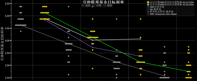 通胀持续回落对降息当然有利好预期,在数据公布后,市场加固了今年降息两次的预期。不过,美联储的利率决议似乎想要打碎这个预期,但最终并没有转变市场看法。