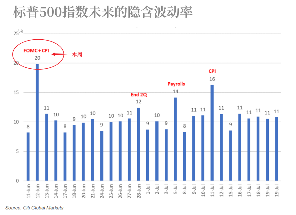 若数字维持不变,那么期权的隐含波动率将达到去年3月美联储决议以来的最高水平。而在过去一年里,CPI和美联储议息日后,标普500指数的平均波幅为0.8%。