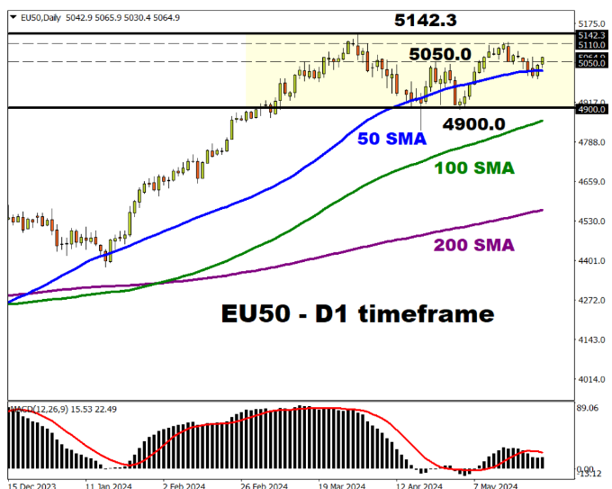 - 若有迹象显示美国物价压力进一步缓解,那么可能提振EU50指数。