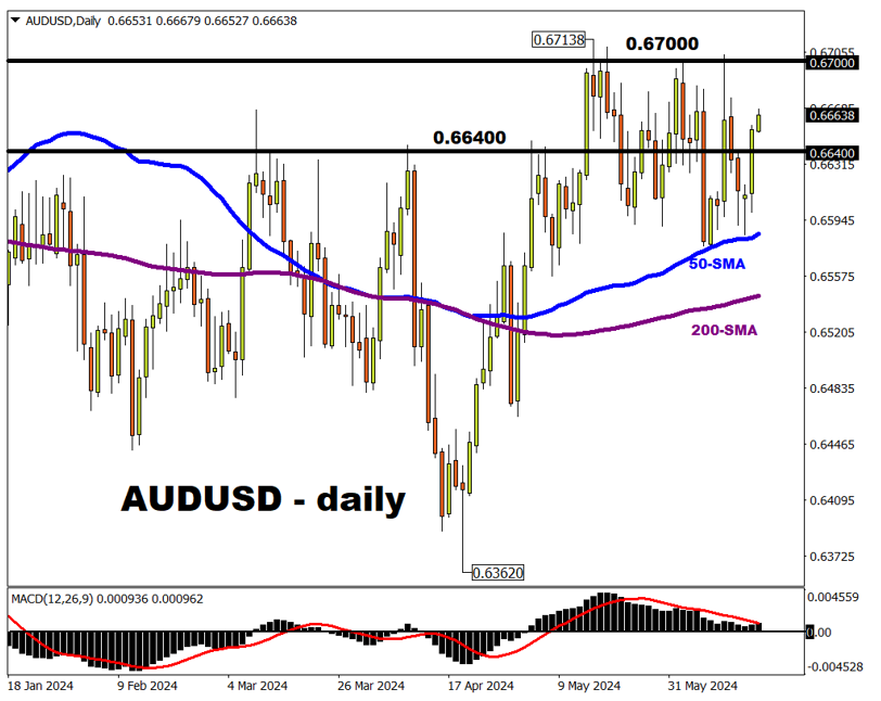 不过,只有在美元大幅走软情况下,澳元/美元才能突破并企稳于0.6700上方,重返2024年1月以来的最高水平。