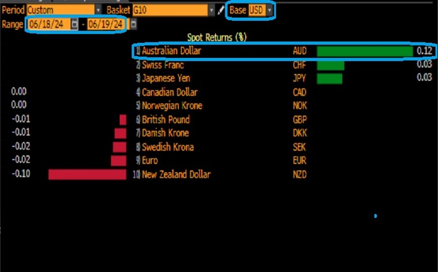 - 周一收盘以来,澳元兑美元在G10货币中表现最好