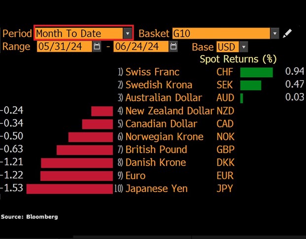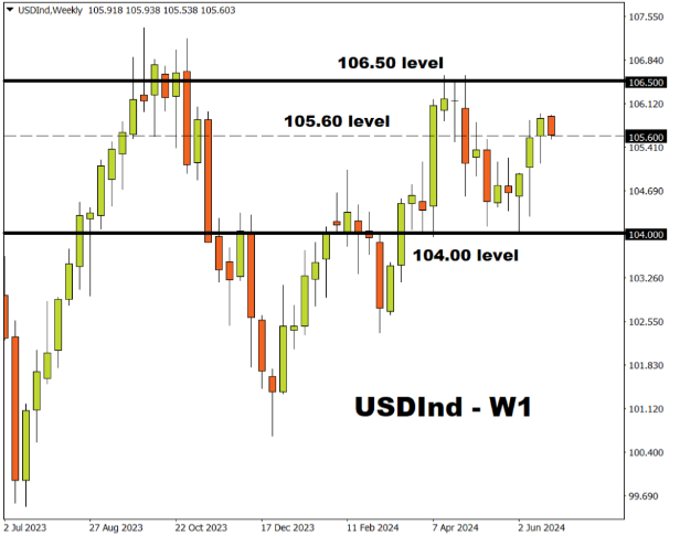 重大风险事件包括拜登和特朗普首场大选辩论,美国5月PCE物价指数出炉,美元波动性可能随之加剧。