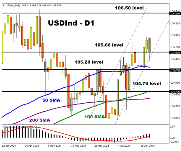 日线图上,美元指数趋于走高,支撑位见105.60 105.20