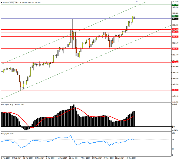 昨天,美元/日元突破4月29日创下的高点160.17水平,一度涨至160.87水平,创了38年来新高,也即是日元创了自1986年以来新低。